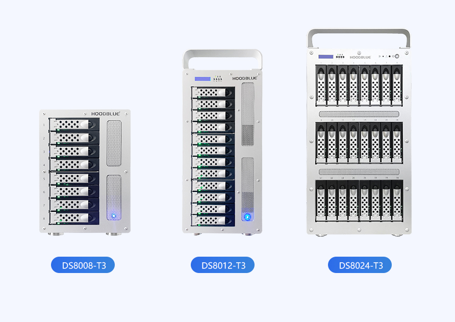 火蓝存储为了迎合市场的需求推出了创新的桌面级塔式雷电存储产品DS8008-T3。该产品采用了Intel新出的Thunderbolt3技术及高级硬件RAID技术,同时采用紧凑结构设计和超级静音设计。客户在进行后期制作时不受噪音的打扰并容易随身携带,同时新出的Thunderbolt3和高级硬件RAID技术使客户充分享受高科技带来的便利。