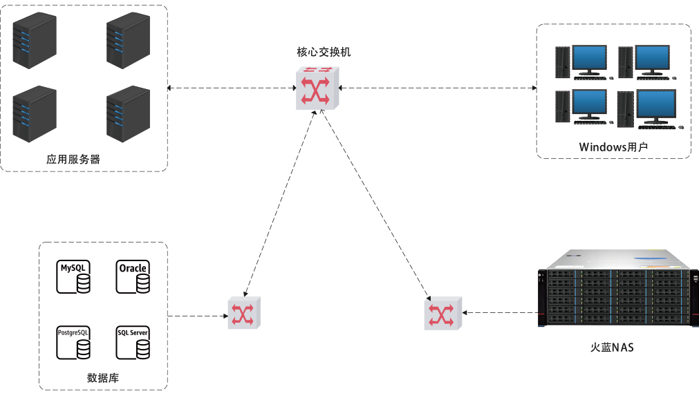 NAS支持开放的标准协议,提供多平台操作系统和多台主机的文件共享服务; 并可为不同用户分配独立的共享文件夹及共享权限。