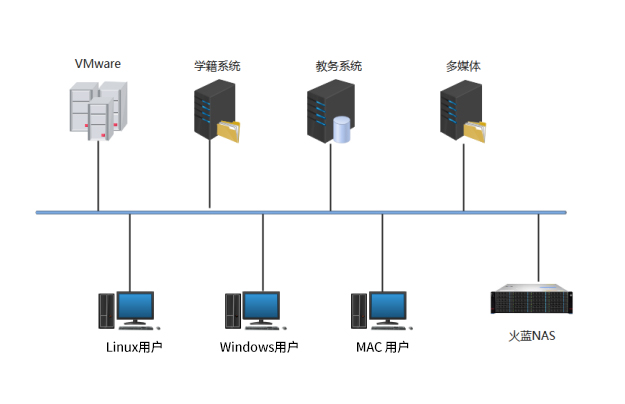 宁波外事学院随着各个学科科室数据量的不断增加,急需扩展存储容量。在原有的局域网环境中,要实现数据在Linux和Windows 之间的共享,并实现各个部门的不同的权限设置。一台存储机器要同时实现备份虚拟机的需求。